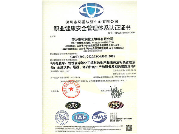 職業(yè)健康安全管理體系認(rèn)證證書(shū)